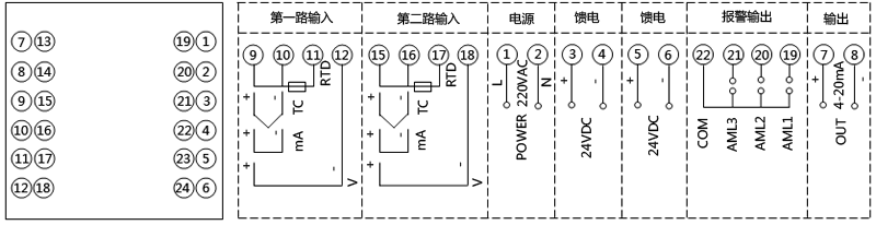 筆者微信收到該產(chǎn)品說明書照片后,立即回復藥廠儀表技術員儀表參數(shù)設置和溫濕度傳感器與顯示控制儀的具體接線方法,因為比較簡單:溫濕度傳感器集成溫度和濕度傳感器在一起,信號以二線制方式輸出,溫濕度傳感器共三根線(DC24V電源正極,溫度信號輸出為黑線,濕度信號輸出為藍線);溫濕度顯示控制為一臺4-20mA輸入+變送輸出+饋電+報警輸出的雙回路顯示控制儀。