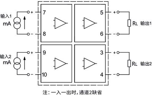 1、一入一出/二入二出輸入側(cè)獲取能量無源信號隔離器接線圖