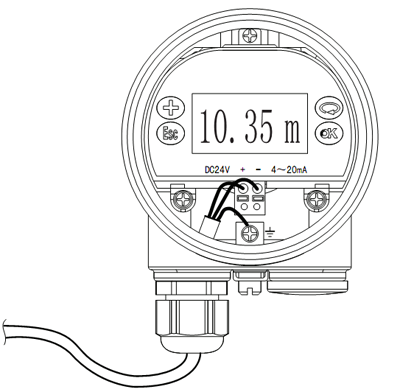 編程器訂貨后出廠已安裝在導波雷達上。編程器由4個按鍵和一個液晶顯示屏組成,可以顯示調(diào)整菜單和參數(shù)設置。