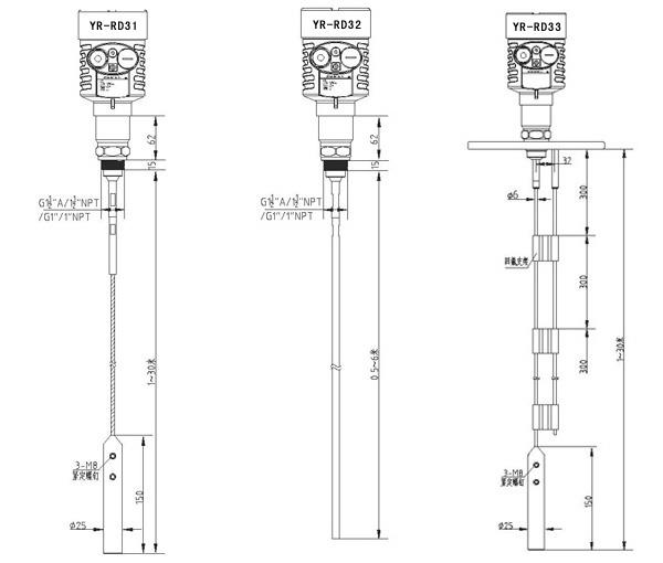| YR-RD32□□□□□□□□-□ 最大量程6米,液體液位測量 | |