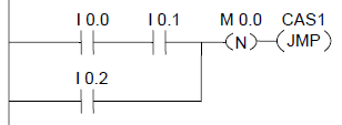 邊沿存儲位M0.0保存RLO的先前狀態(tài)。RLO的信號狀態(tài)從“1”變?yōu)椤?”時(shí),程序?qū)⑻D(zhuǎn)到標(biāo)號CAS1。