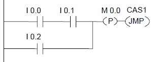 邊沿存儲位M0.0保存RLO的先前狀態(tài)。RLO的信號狀態(tài)從“0”變?yōu)椤?”時(shí),程序?qū)⑻D(zhuǎn)到標(biāo)號CAS1。
