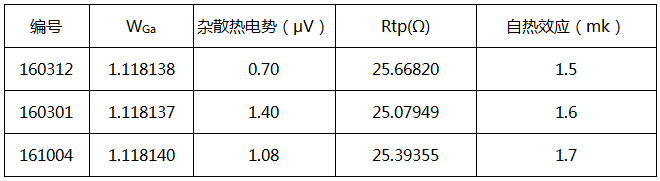 絕緣電阻值已達(dá)規(guī)定的指標(biāo)。Rtp值、自熱效應(yīng)均由中國計量科學(xué)研究院測定,數(shù)據(jù)見表2。表2中,自熱效應(yīng)為通過1mA電流時在水三相點(diǎn)處測得的溫升。雜散熱電勢是溫度計置于鋁凝固點(diǎn)時測得的。