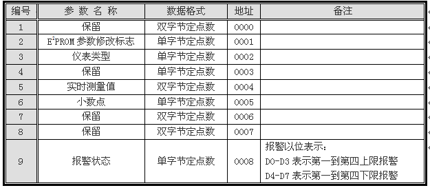 根據上面設置的串口,選擇COM2,寄存器類型選擇4,使用的是MODBUS中的03讀取指令。寄存器地址選擇4(000004是顯示格式,值就是4),和下表的儀表讀取一致。