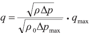 進(jìn)而將公式(3)代入公式(2)中得到任意工況下的流量計(jì)算公式,見下式: