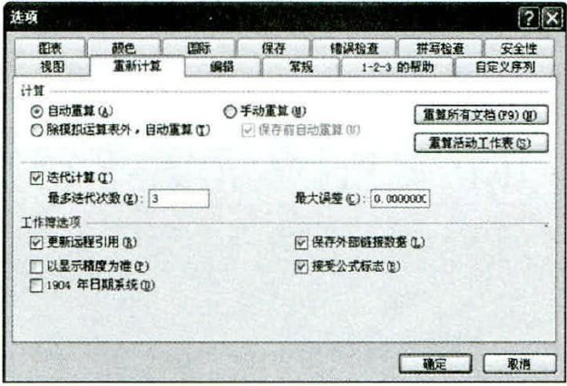 ②點擊【重新計算】選項,選中【迭代計算】復(fù)選框,設(shè)置“最多迭代次數(shù)”及“最大誤差”。經(jīng)過實際計算,發(fā)現(xiàn)最多迭代次數(shù)取3次已滿足要求,最大誤差中輸入1×10-8(IST-1990中要求達(dá)到的最大迭代誤差),點擊【確認(rèn)】按鈕后,即在單元格中顯示計算結(jié)果,如圖1所示。