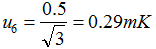 b、由一等標準電阻溫度計在水三相點分度可產生0.5mK的誤差,取均勻分布,則由此引起的標準不確定度為u8=0.29mK。