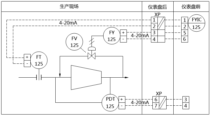 圖4   壓縮機防喘振控制系統雙線儀表回路圖