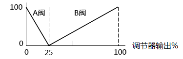 [維修小結]通過DCS組態來改變分程曲線比較容易實現。本例原來兩臺調節閥以調節器輸出50%為分界。現在以25%為分界,使分程曲線的區間大小不一樣,如圖1所示,使兩臺調節閥的動作快慢不同,區間長的B閥動作慢,區間短的A閥動作快,既符合了工藝要求,控制效果還滿意。