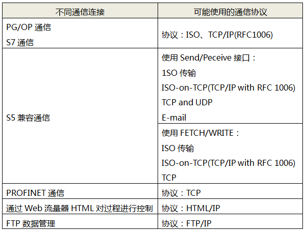 西門子PLC的以太網通訊可使用PG/OP通信、S7通信、S5兼容通信、PROFINTET通信、通過Web流量器HTML對過程進行控制和FTP數據管理等通訊連接,不同通訊連接會用到不同通信協議,不同通訊方式在PLC里面需要調用不同的功能塊。昌暉儀表在本文簡單介紹西門子PLC以太網通訊不同通信協議及連接特點。