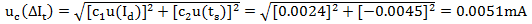由于以下分析中Id的標準不確定度分量和ts的標準不確定度分量之間相互獨立,故: