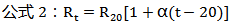 公式2中Rt為導(dǎo)體在工作溫度t下的電阻值,Ω/km;R20為導(dǎo)體在溫度20℃下的電阻值,Ω/km;α為20℃時(shí)導(dǎo)體電阻溫度系數(shù),1/℃;t為工作溫度,℃。