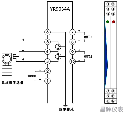 接入隔離器的4-20mA信號分為有源和無源兩類,二線制4-20mA為無源信號,三線制和四線制制4-20mA為有源信號,二線制/三線制/四線制4-20mA電流信號與隔離器的接線各不相同。本文以昌暉儀表隔離器YR9034A-0-GNNN-N為例介紹二線制/三線制/四線制4-20mA電流信號與隔離器如何接線。