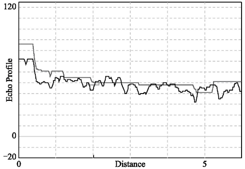 超聲波脈沖在容器內(nèi)飛行傳輸過(guò)程中,遇到爬梯、梁、管道、焊縫、攪拌葉片等結(jié)構(gòu)物時(shí),也會(huì)產(chǎn)生回波,即雜波干擾信號(hào)。為了從回波曲線中甄別出真實(shí)的液位回波信號(hào),超聲波液位計(jì)通常會(huì)設(shè)置一條隨時(shí)間變化(即空間上的距離變化)的濾波曲線,確定當(dāng)回波信號(hào)超出閾值時(shí),才被認(rèn)定為有效回波,進(jìn)而進(jìn)入算法識(shí)別模塊后續(xù)處理。該回波抑制曲線,又稱為TVT時(shí)變閾值、干擾抑制曲線、罐體映像等,其目的在于通過(guò)閾值門限,濾除無(wú)用干擾雜波。如圖2所示。