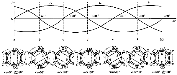 解釋三相異步交流電動機中異步的含義不得不提三相異步電動機工作原理相異步電動機是由定子和轉子兩部分構成的,其中定子的目的是產生旋轉磁場。三相異步電動機的定子繞組是一個空間位置對稱的三相繞組,在定子繞組通入三相對稱的交流電流電,這樣就會在電動機內部建立起一個恒速旋轉的磁場。旋轉磁場的方向是由三相電流的相序決定的,即把通入三相繞組中的電流相序任意調換其中的兩相,就可改變旋轉磁場的方向。