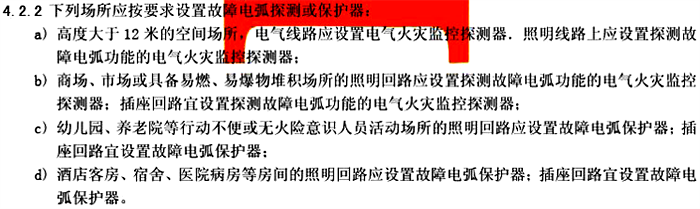 簡言之,人員密集場所+有可燃物的房間需設置AFDD,設置部位為照明和插座回路。