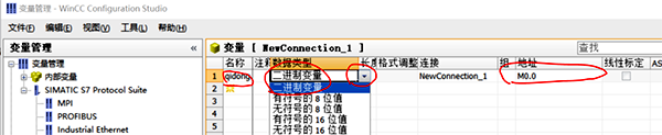 2、打開“變量管理”-右鍵“變量管理”-“gd加新的驅動程序”-“SIMATIC S7 Protocol Suite”