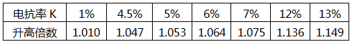 電容器補償回路串聯電抗器后,電容器端電壓升高,其升高倍數如下: