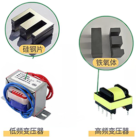 高頻變壓器和低頻變壓器的工作原理是相同的,都是利用電磁感應的原理工作的,但在制作材料方面,它們的“芯”所使用的材料是不同的:低頻變壓器使用的是硅鋼片芯,高頻變壓器使用的是鐵氧體芯。