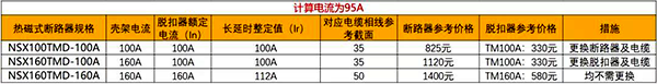 方案二NSX160TMD-100A在考慮20%的余量情況下,又考慮了60A(約90%)余量,但是這60A余量是不能直接拿來用的,沒有即戰力,只能更換脫扣器才可,這樣多出來的脫扣器成本(TM160為580元,TM為330元)成了擺設。