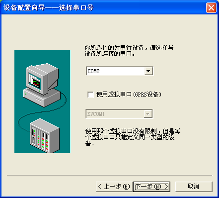 選擇通訊串口。單擊下一步,