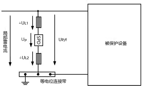 電壓保護水平Up表示由于施加規定陡度的沖擊和規定幅值及波形的沖擊電流而在SPD兩端之間預期出現的最大電壓,即In或Iimp沖擊時的殘壓。
