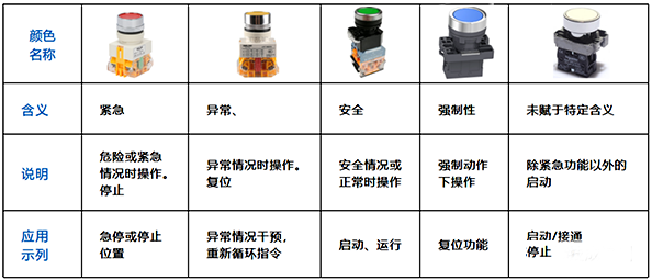 由于按鈕開關和指示燈的顏色基本都一樣,這里列出一張表供大家參考討論,如下表1所示: