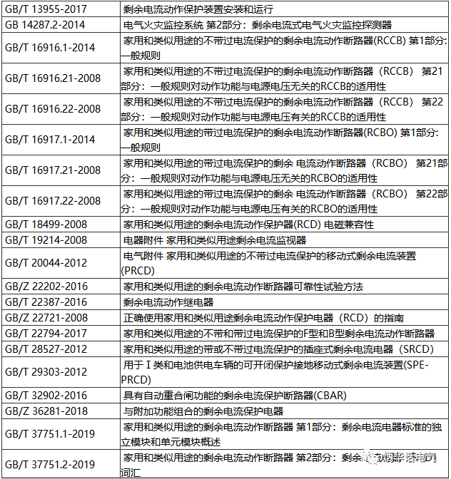 表1 我國有關RCD的現行國家標準一覽表