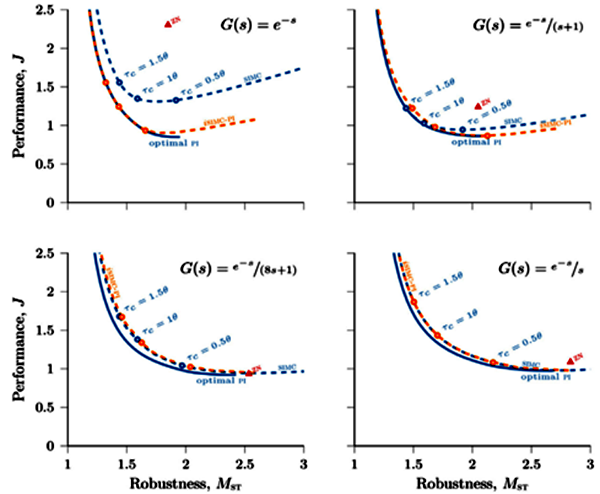 純滯后對象可以通過算法改進改善性能,但是純滯后對象實際應用中并不多所以對SIMC-PI進行改進意義不大。雖然使用微分能帶來性能和魯棒性的改進,但是增加微分會顯著增加整定的難度而且微分對噪聲非常敏感,這些改進是以增加輸入使用為代價的,以響應測量噪聲、輸出干擾和設定值變化。SIMC規則可能是最佳選擇。Skogestad教授針對更復雜的模型通過使用有效純滯后來近似其余的高階動態來處理。