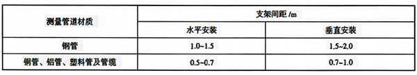 15、儀表管道應采用管卡固定在支架上。當管道與支架間有相對運動時,應在管道與支架間加軟墊。支架間距宜符合表1。