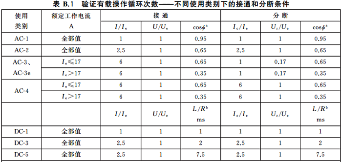 表1中AC-1和DC-1分別對應交流和直流無感或微感負載,這與充電樁內接觸器的工作特點相近,但實際上從接觸器電壽命的角度看,AC-1或DC-1時接通和分斷都是1倍額定電流,比起充電樁內實際接通20A、分斷5A的要求高多了。