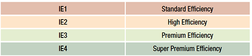 2014年國際電工委員會正式發(fā)布了IEC60034-30-1 Efficiency classes of line operated AC motors(IE code),該標(biāo)準(zhǔn)定義了電動機的效率等級,總共分為5個等級:
