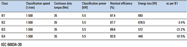 例如5.5kW的電動機,IE1電機的效率只有87.4%,而IE3電機的效率為89.6%,且損耗相對于IE2下降了21.2%,IE4電機的效率達(dá)到了92%,損耗更是下降了57.5%,運行效率和節(jié)能效果明顯。