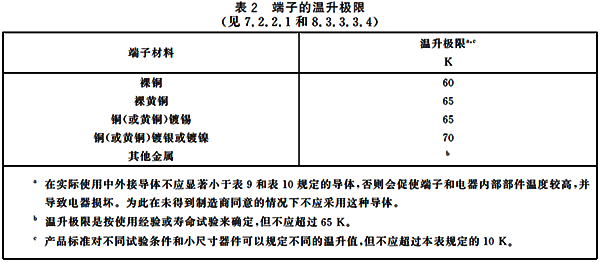 在表6中,如果內(nèi)裝元件的端子同時也是外部絕緣導(dǎo)體的端子,則應(yīng)采用較低的溫升極限值,溫升限值是元件制造商規(guī)定的最大溫升和70K之間的較小值,所以即使是安裝在柜內(nèi)的低壓元器件,其端子溫升要求和GB/T14048.1沒有差異。