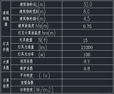 對于這個照度計算,數據只能取自圖紙,首先人工填入相關數據: