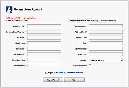 在https://ecs.emerson.com/ecsportal/account/register申請帳號,填寫相關內容后,點擊Submit提交。大概三個工作日后會收到郵件回復,告知您賬號及密碼。