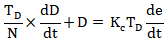 這種修正可以解釋為理想微分被一個時間常數為TD/N的一階系統濾波,這個近似作為低頻信號分量的微分。而增益最大限制為KcN,這意味著高頻測量噪聲最多被放大KcN倍,N的典型值為8~20。