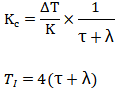 第一步首先只考慮純比例控制不考慮積分作用,計算公式與自衡對象的Lambda整定方法類似: