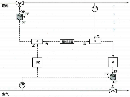 FT2=R×FT1式中FT2為從過程變量;FT1為主過程變量;R為比值系數(shù)。