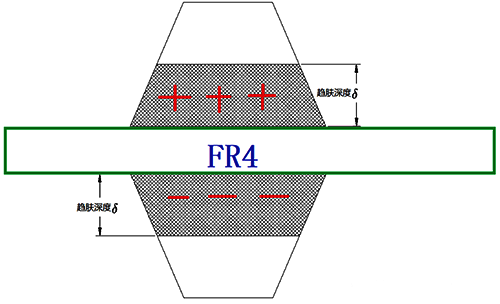 趨附效應(yīng)有個(gè)經(jīng)驗(yàn)公式如下,頻率越高,透入深度值就越小: