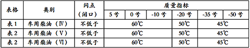 -5號車用柴油:適用于風險率為10%的最低氣溫在8℃以上的地區使用;