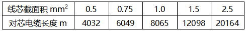 結合線芯截面積選用原則c的要求,截面積與敷設長度的選用推薦值如下表。