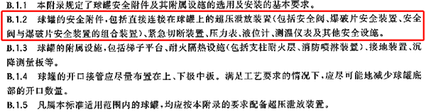 而現行的GB12337-2014《鋼制球形儲罐》中安全附件是涵蓋了儀表的,這與老容規一致,將來升版后應該也會改掉吧。