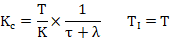 Lambda整定方法中的λ被賦予了工程含義:期望的閉環時間常數。推薦的常數為λ=純滯后時間τ。
