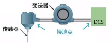 *分體傳感器外殼和分布式控制系統(tǒng)(DCS)處的屏蔽接地——變送器處無(wú)接地。