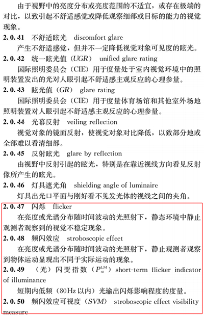 在術語中,新增的閃爍、頻閃效應、(光)閃變指數、頻閃效應可視度、非視覺效應以及智能照明控制系統這些需引起我們重視。