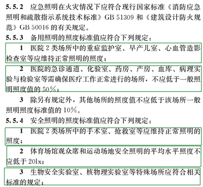 5.3.6 醫療建筑照明標準值中,病房的參考平面及其高度規定為0.75m水平面,在舊標準中為地面,其照度標準值也進行了調整,改為200lx。