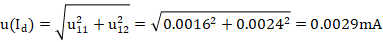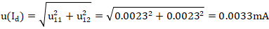 (6)由溫度變送器的輸出電流的測(cè)量重復(fù)性和多功能校準(zhǔn)儀的測(cè)量誤差引起的不確定度分量u(Id)