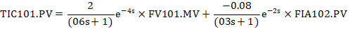 在上圖所示的控制中,當TIC101投自動時,可以用閉環數據獲得前饋系數。在溫度控制時,擾動DV發生變化ΔDV,在反饋作用下,最終MV會抗擾變化ΔMV,ΔMV/ΔDV就是前饋系數;