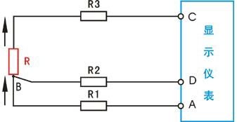 連線到3線制熱電阻體的顯示儀表,此時會測量AB間電壓和BC間電壓,然后將兩者的差額計算為測量值。